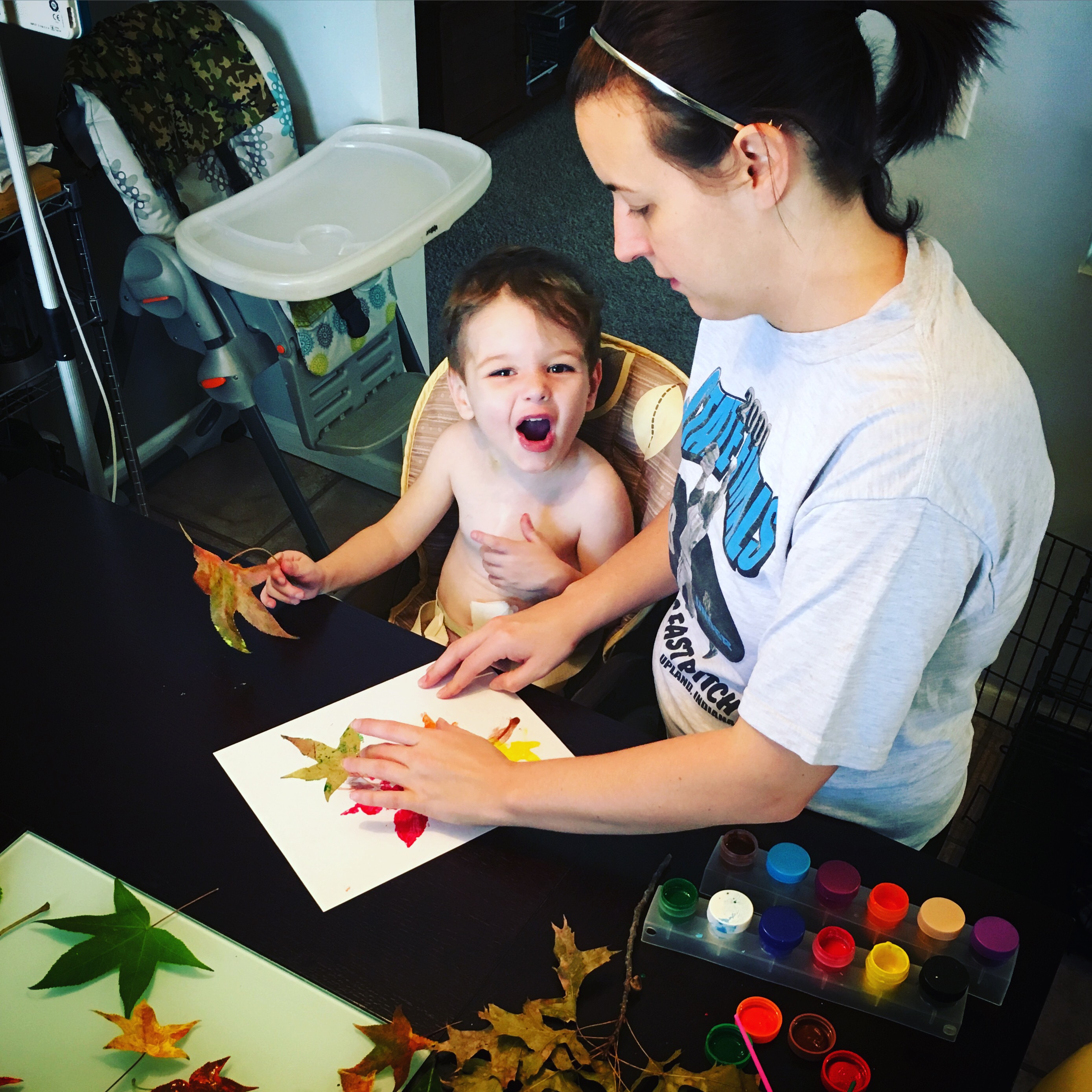 Well, after two long nights of Beckett not wanting to sleep in a foreign bed, he is home and sleeping soundly in his crib. This weekend was definitely unexpected, especially since a little over a week ago Beckett had his quarterly cardiology appointment and his GI appointment last week, both of which went wonderfully. However, in the ER, one of the first things we tell patients is to follow up with a primary care provider, so, in an attempt to avoid looking like a hypocrite, I took Beckett to his doctor Friday morning. We were really just going to say “Hey, we were seen in the ER on Sunday, and he is doing much better”. Sadly once we got there, his oxygen saturation was a little too low for comfort so we earned ourselves an overnight observation stay in the Peds unit. It was only a few short hours before it was determined that Beckett would be better suited at Riley and we were on our way to Indy. To top it off, when Lifeline rolled in to Beckett’s room at Ball Memorial, he stood up and did a somersault in his crib. It was hilarious. He was probably the least sick “sick kid” they have ever transported. He loved the ambulance ride. My dad got him a toy ambulance when we arrived at Riley ER and all weekend Beckett played with it saying “I wanna ride it”.